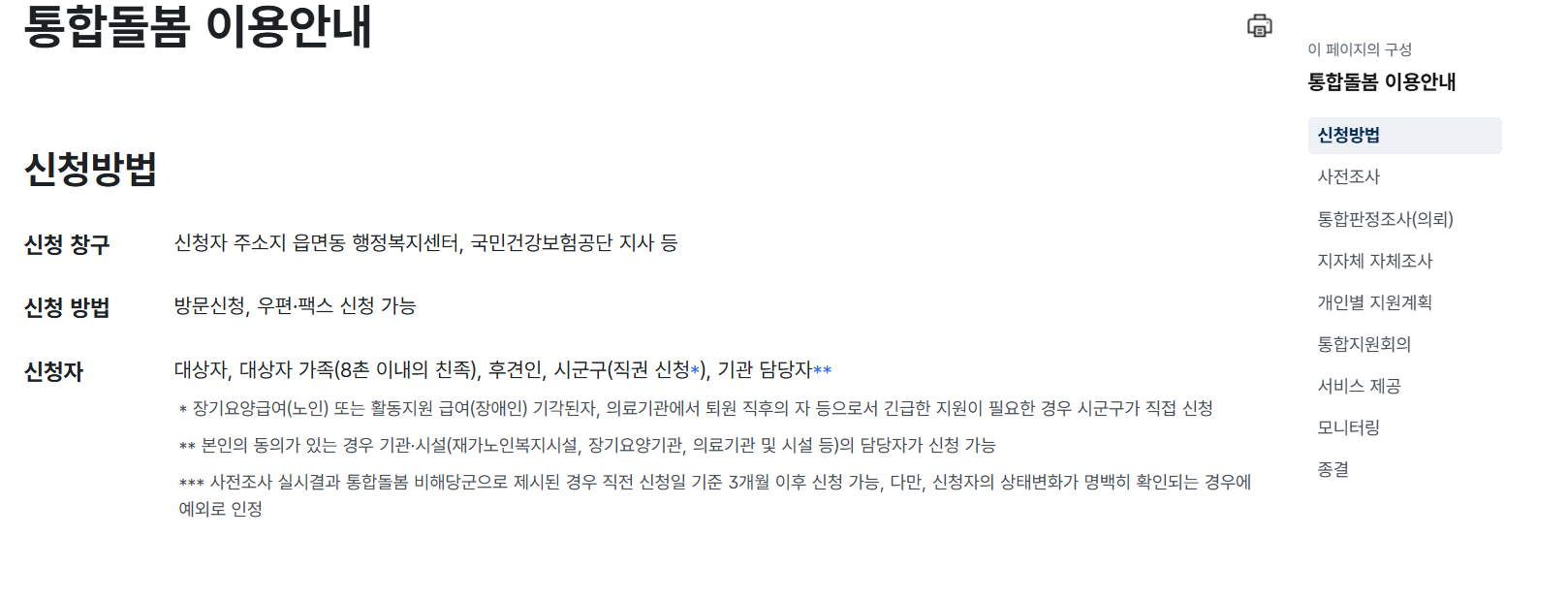 - 원스톱 통합 신청: 예전에는 보건소, 구청, 복지관을 따로 찾아가야 했지만, 이제는 읍면동 행정복지센터 한 곳만 가면 됩니다.